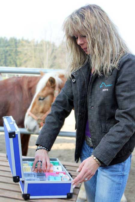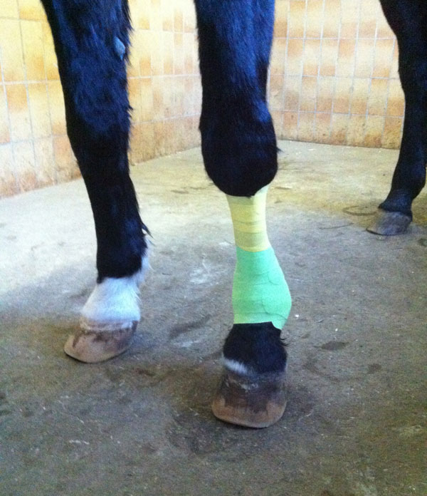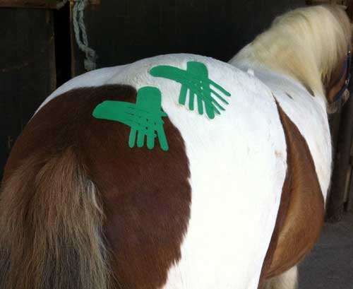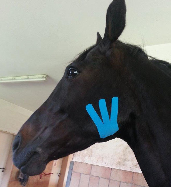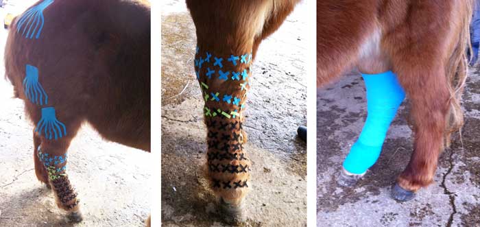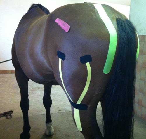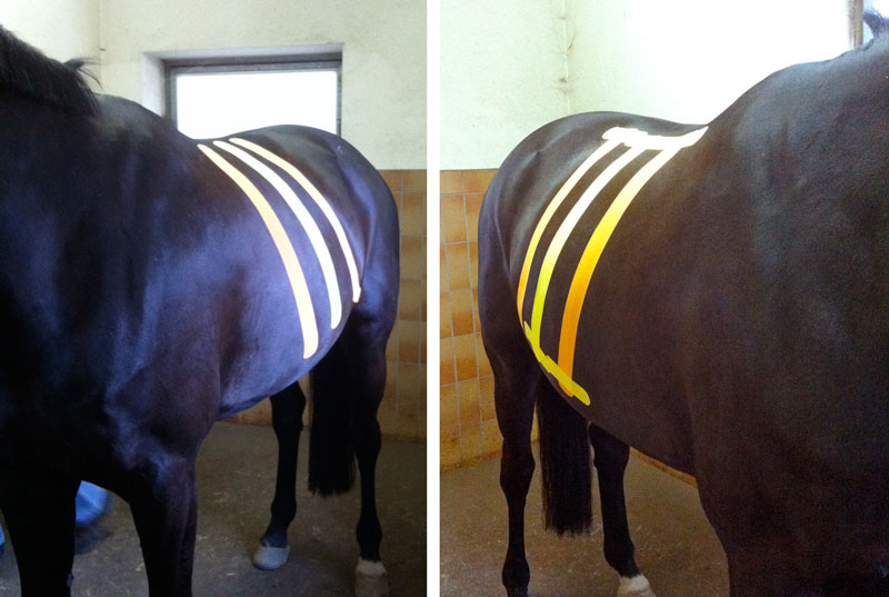 Entwicklung seit 2007 am Pferd - Bestimmt haben Sie schon Sportler gesehen, die sogar im Wettkampf sog. physiologische Tapes trugen. Auch auf den Knien von Fußballspielern sind Tapes seit vielen Jahren ein bekanntes Bild. Die nach den Regeln der Farblicht-Therapie eingefärbten Baumwolltapes werden in der Physiotherapie für Menschen bereits seit vielen Jahren bei unterschiedlichsten Verletzungen, Verspannungen und zur Korrektur von Haltungsfehlern angewendet. Seit 2007 wird die Methode auch bei der Therapie von Pferden, Kühen und Hunden eingesetzt*.
